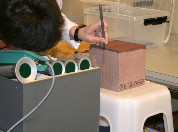 En 2007-2009 Nous avons travaillé sur un projet de recherche et développement sur le thème du contrôle et du suivi des traitements de consolidation pour les cathédrales de Bâle, Berne, Fribourg et Lausanne. Nous avons proposé à ces quatre institutions, toutes concernées par le problème de consolidation de divers grès, de développer une méthode de mesure in situ simple permettant d’ajuster les consolidations à chaque cas particulier et d’en suivre les effets au cours du temps. Sur la base d’une étude bibliographique, nous avons sélectionné pour cela un appareil censé détecter l’humidité dans les murs en émettant et recevant en retour des micro-ondes : le MOIST 200B de hf sensor. Les résultats de cette technique de mesure se sont malheureusement révélés beaucoup trop aléatoires pour répondre à nos besoins.